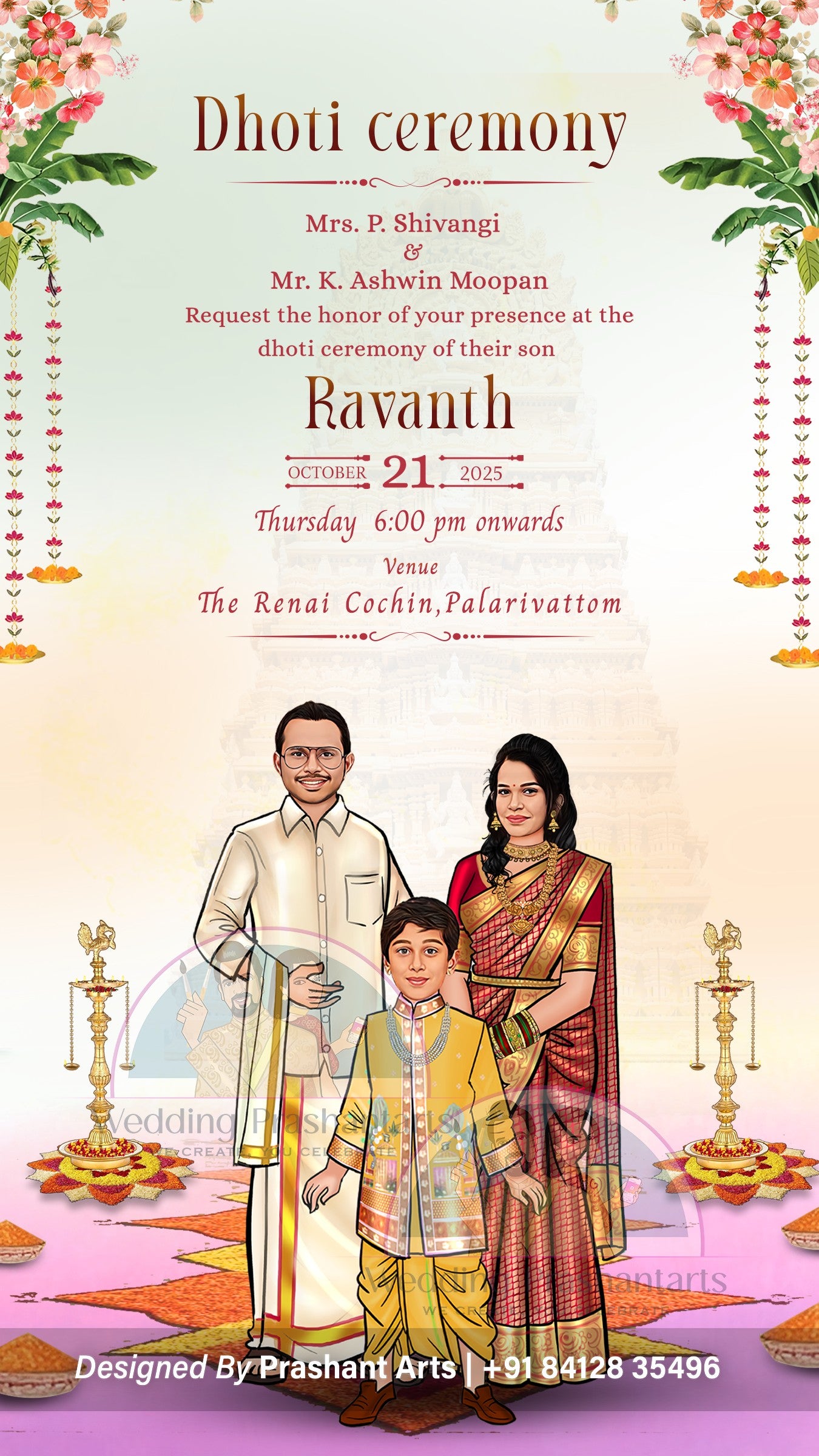 Add a personal touch to your Dhoti Ceremony Invitation with customized designs and artwork. A beautiful way to invite guests to your son’s special celebration.