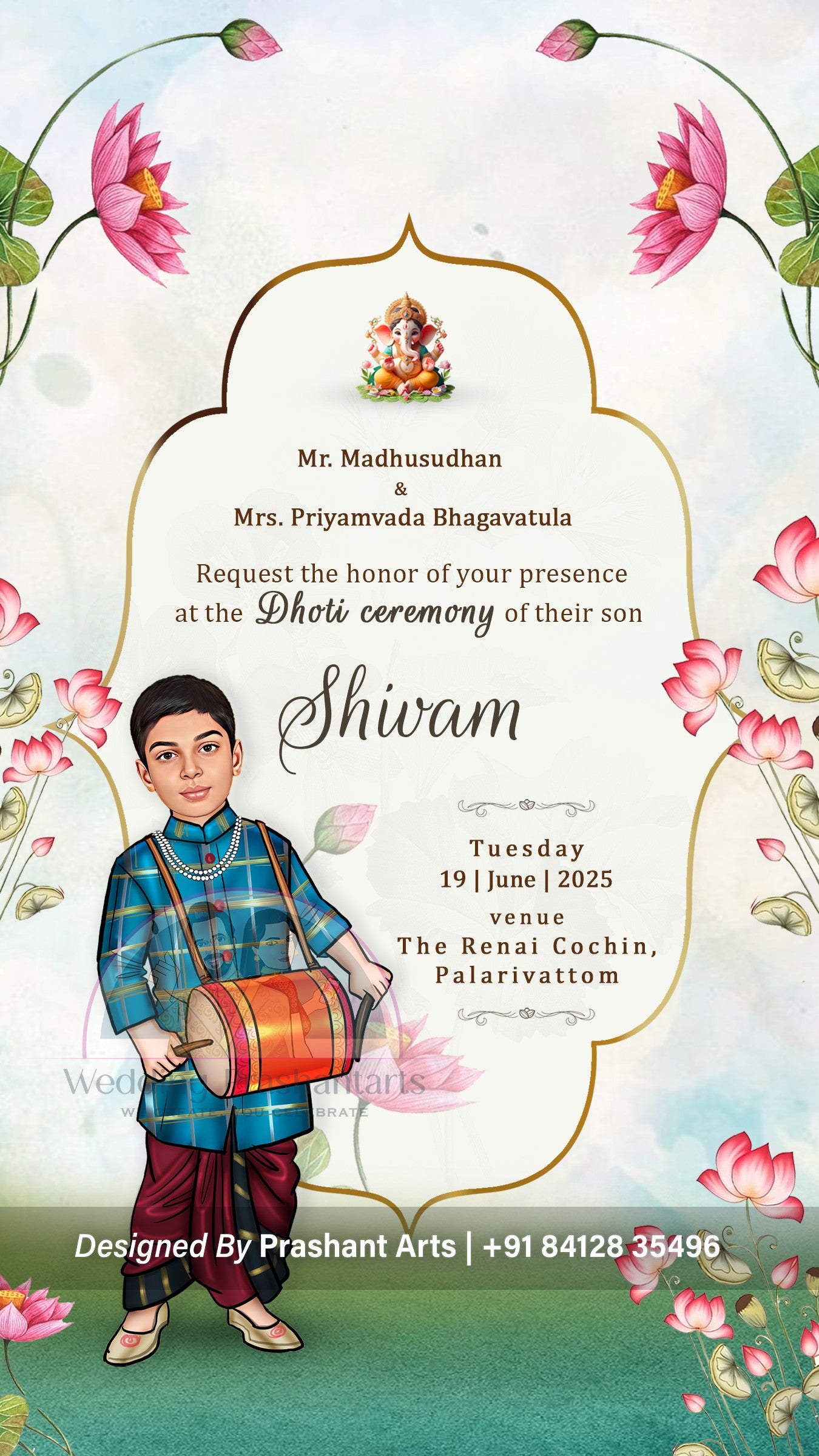 Make your son’s milestone unforgettable with a personalized static Dhoti Ceremony Invitation. Elegant fonts, traditional designs, and custom details make it truly special.