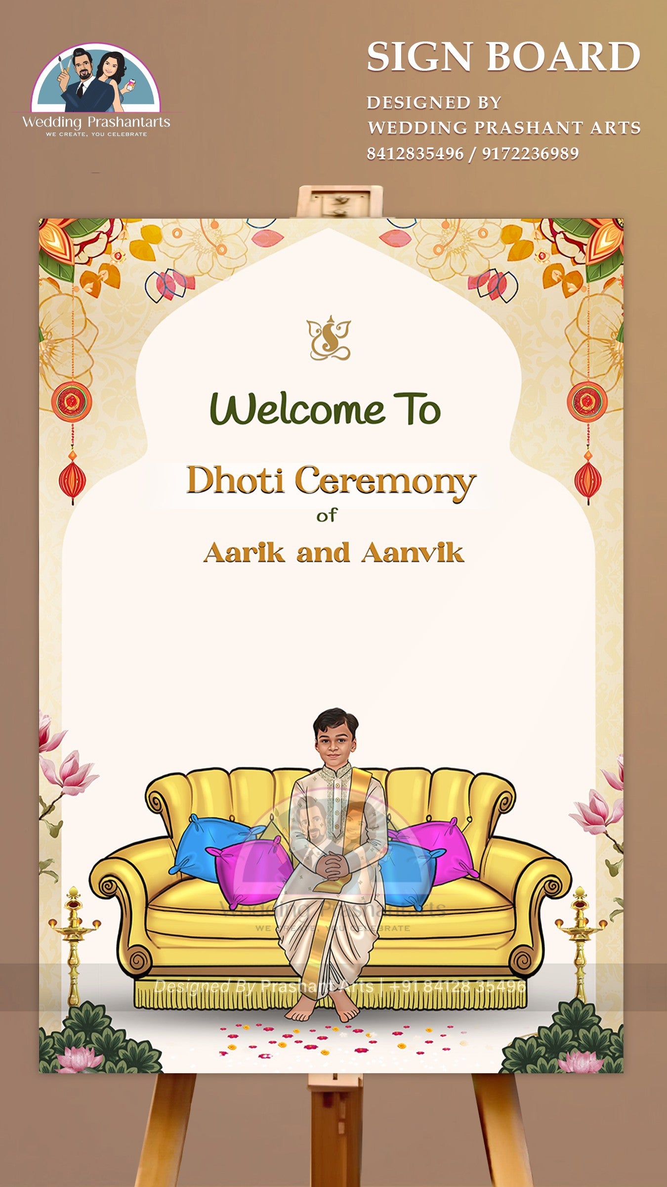 Bright and colorful, this Dhoti Ceremony Welcome Board is designed to reflect the festive spirit of the occasion. A perfect addition to your event décor and guest experience.
