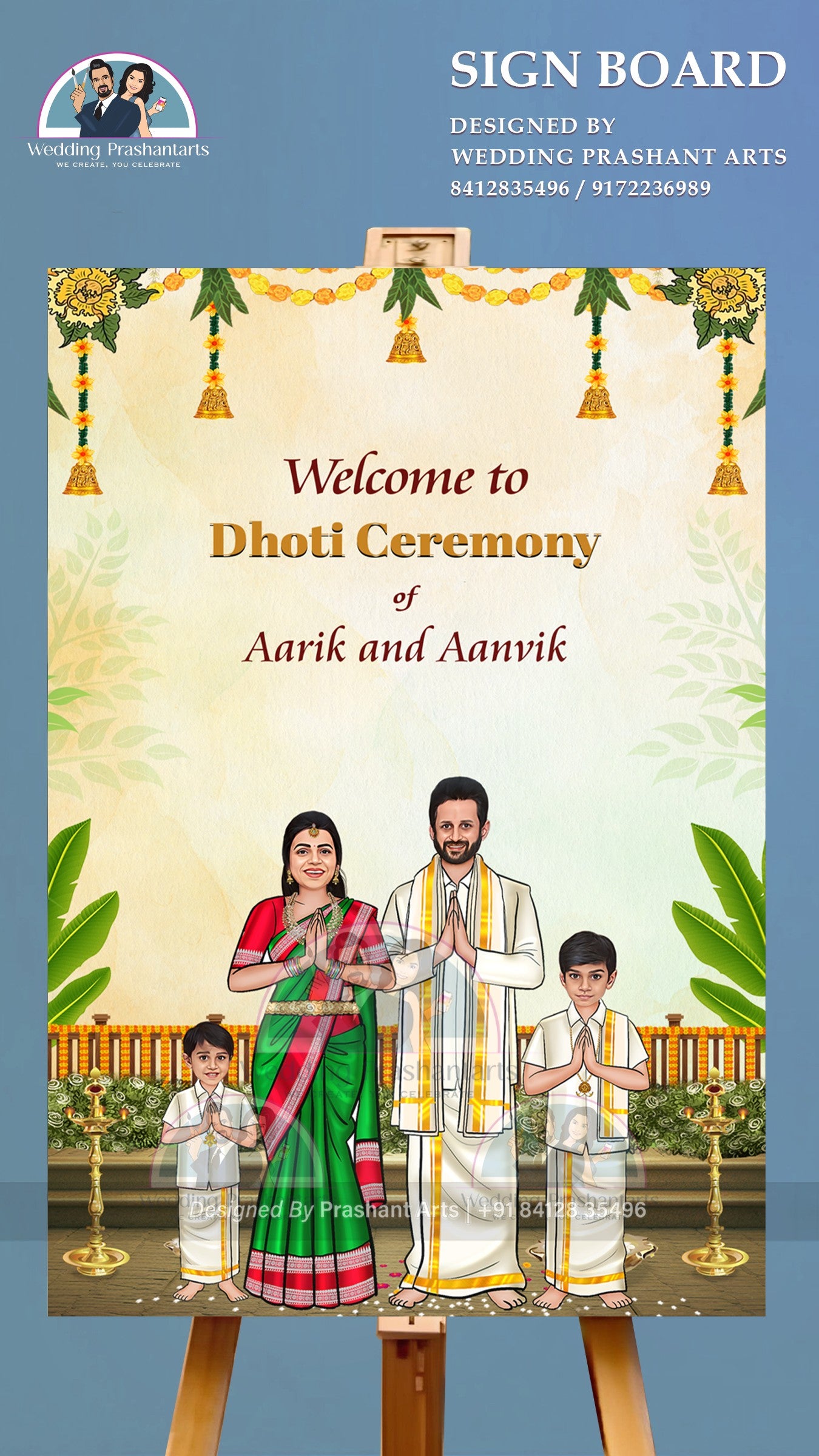 Showcase your son’s special day with a customized Dhoti Ceremony Welcome Board. With beautiful fonts, ethnic patterns, and personalized details, it’s the perfect décor piece for your celebration.