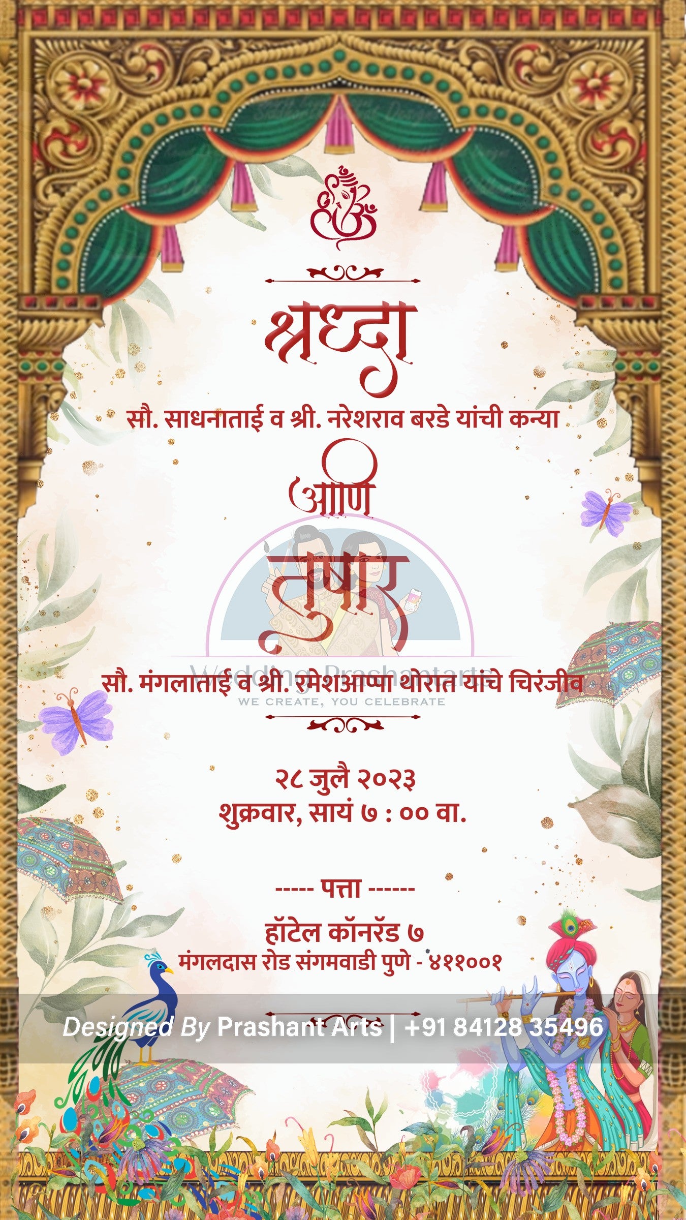 Browse Marathi Wedding Invitation static cards inspired by authentic Lagna Patrika designs. Traditional, cultural, and elegant invites for your big day.