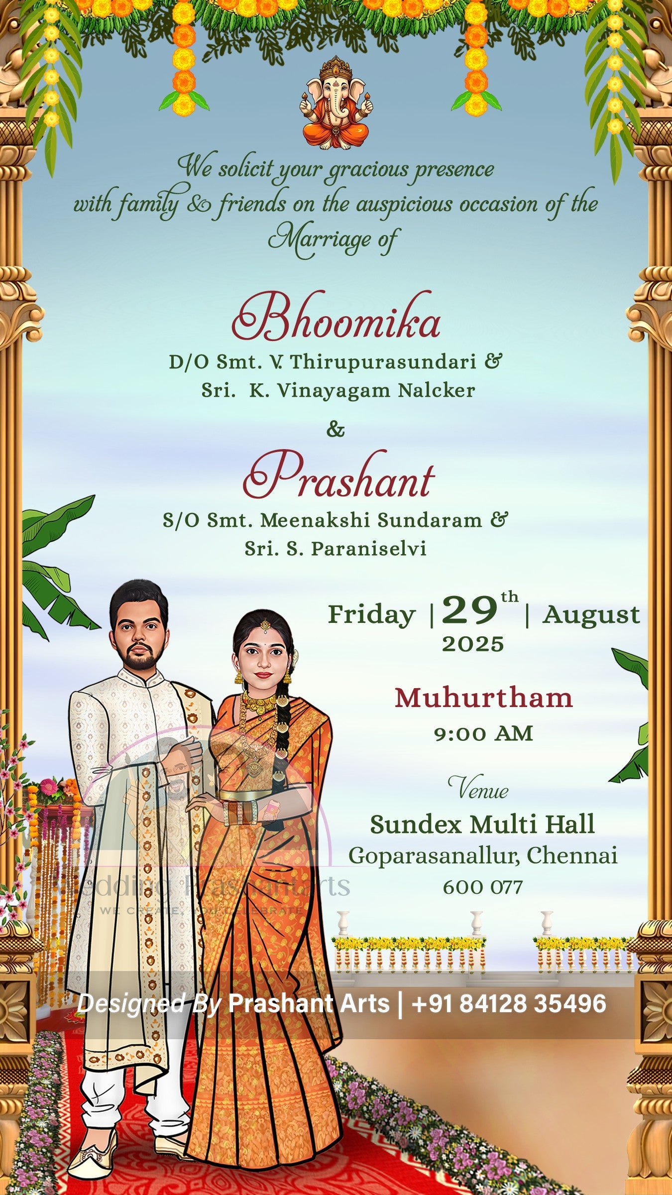 Find your perfect match for your dream South Indian wedding celebration with our exquisite collection of digital wedding invitations! Each design is crafted with cultural grace and a touch of modern flair, reflecting the beauty and traditions of South Indian weddings.