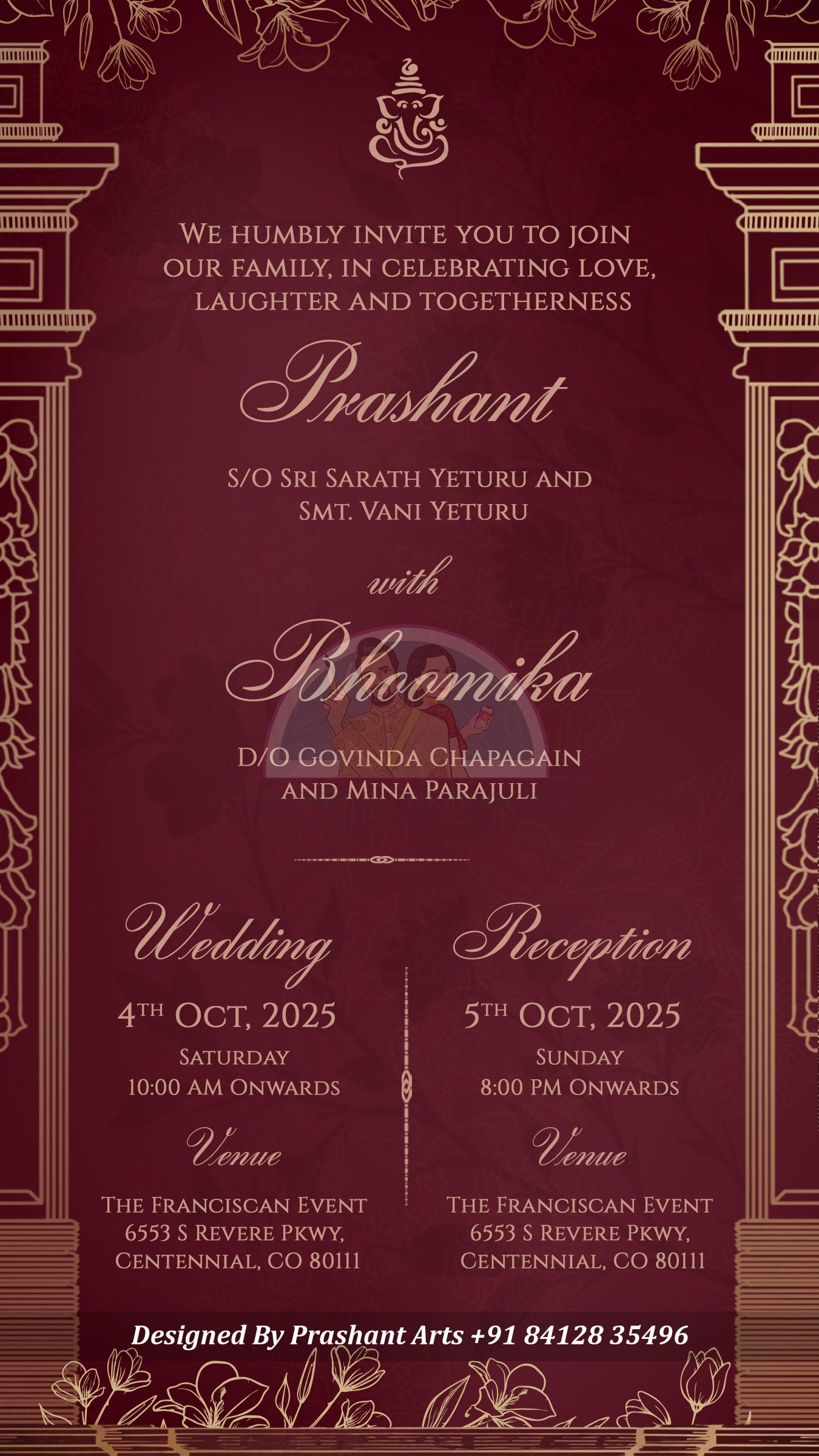 Celebrate the beginning of your forever with stunning South Indian wedding invitations designed to reflect your unique love story. Wedding PrashantArts offers a beautiful collection of digital invitations that capture the essence of South Indian weddings while allowing you to personalize them with your special touches.
